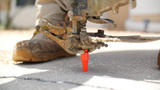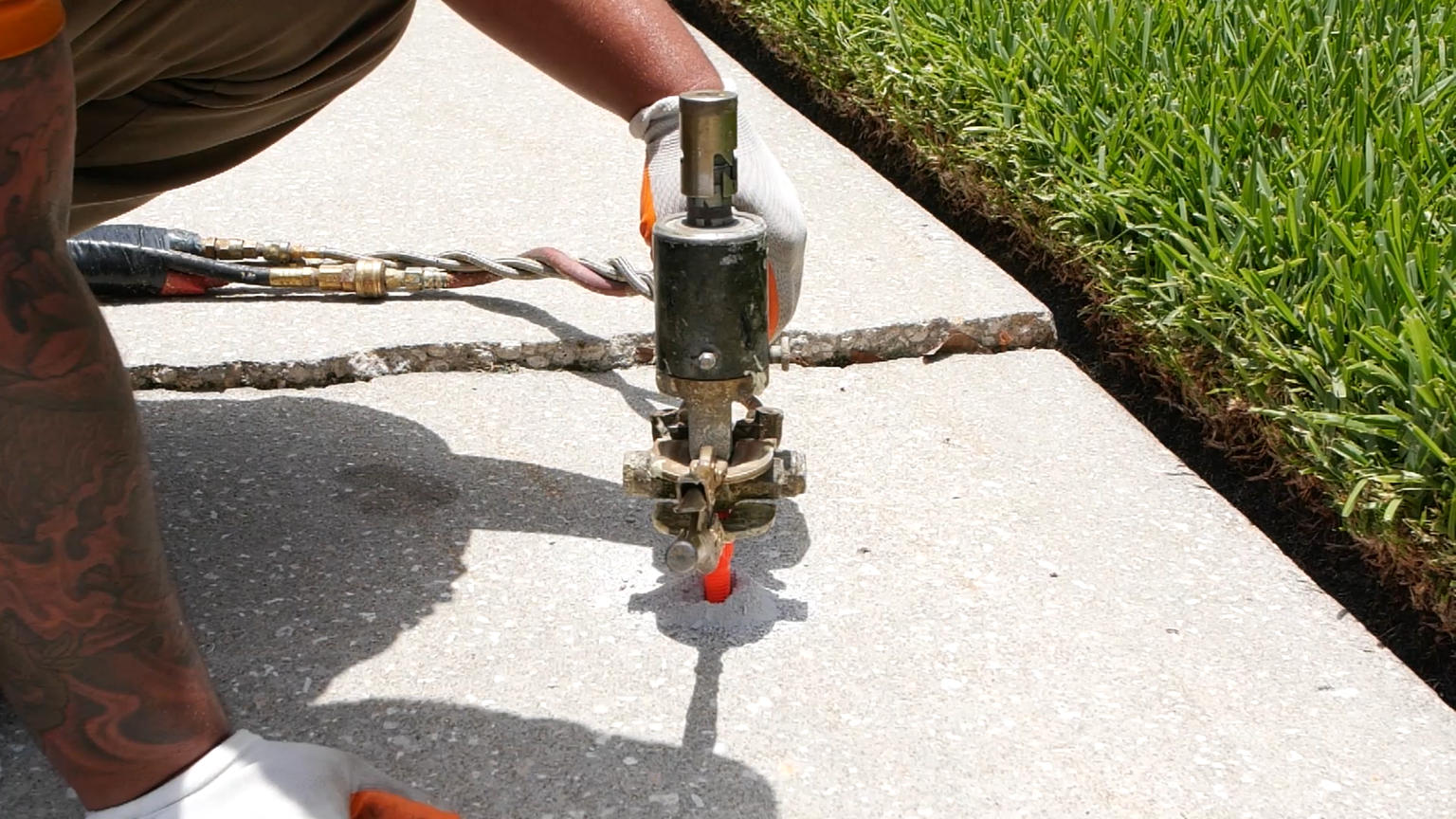- Step 1: Penny-size holes are drilled into the sinking concrete, and injection ports are inserted.